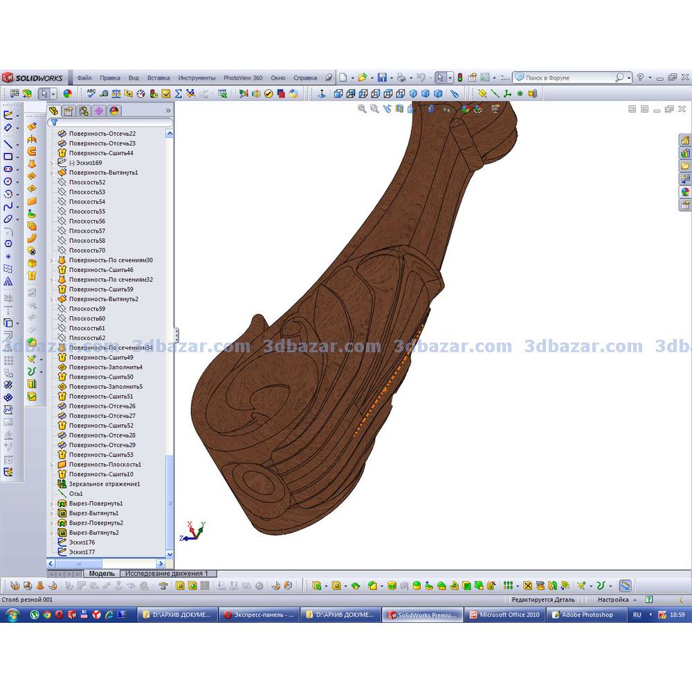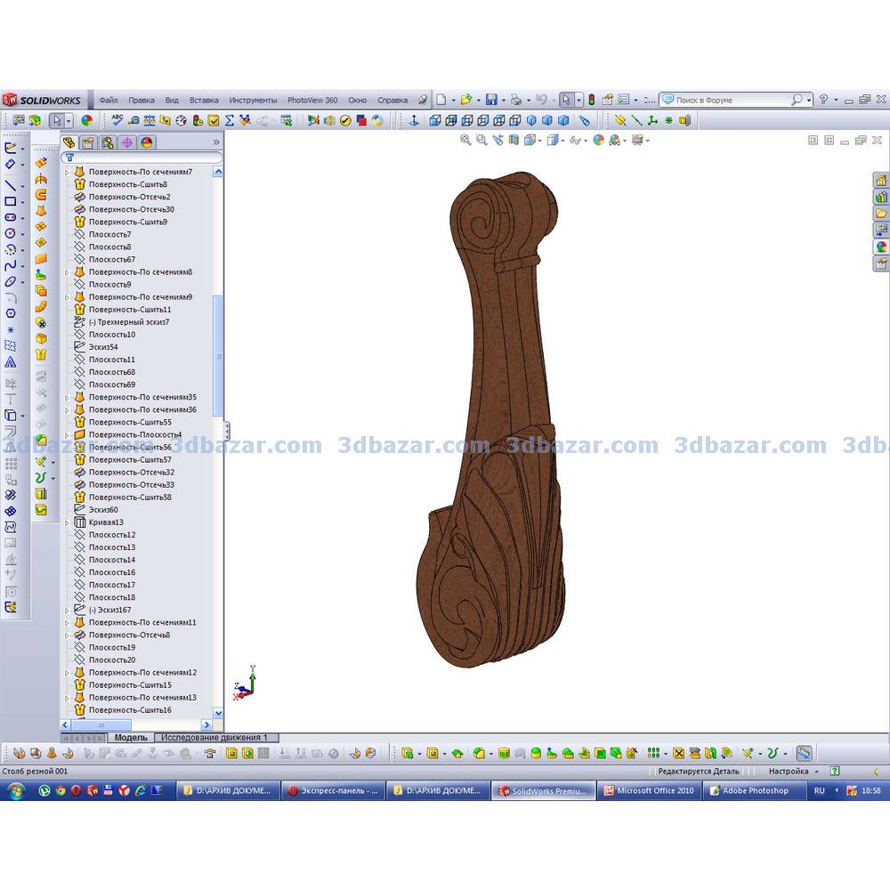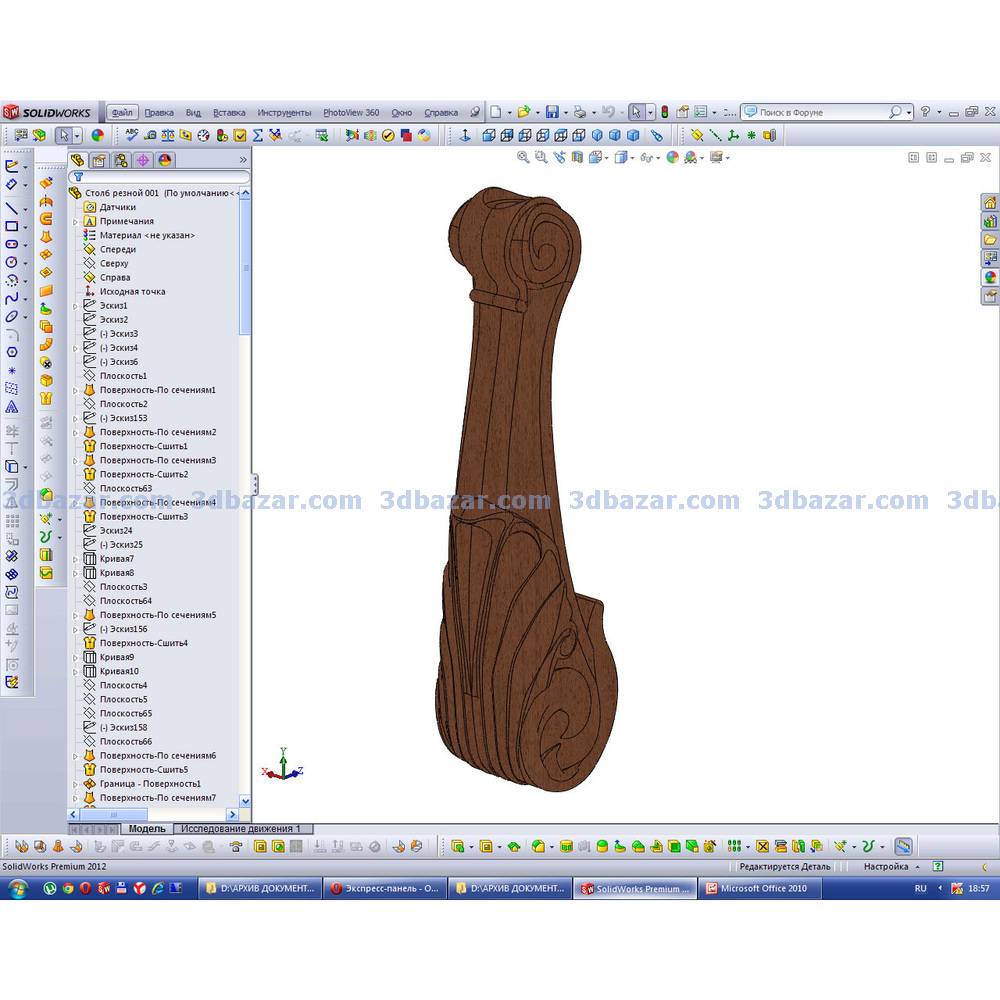 Столб резной для лестницы. Подробно проработанная сборка SolidWorks для обработки на ЧПУ. Моделирование в среде программы SolidWorks. Модель столба резного дополнительно сохранена в форматах: STL, IGES, X_B, STEP для импорта в другие системы.