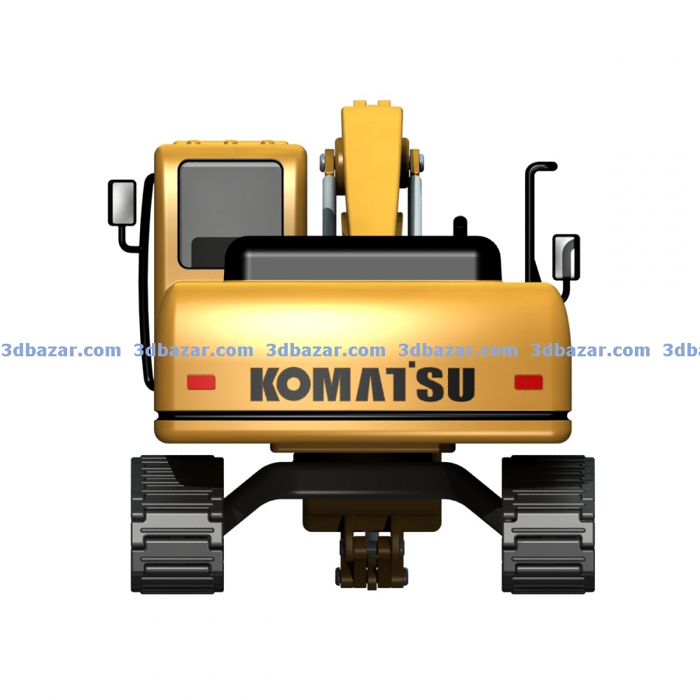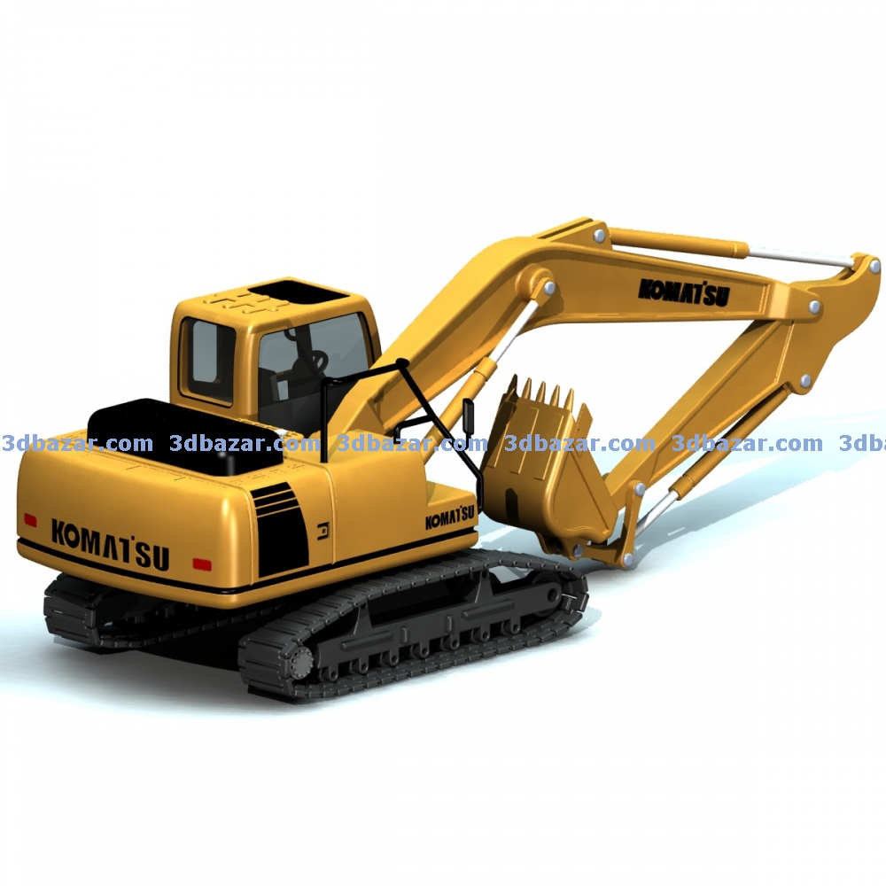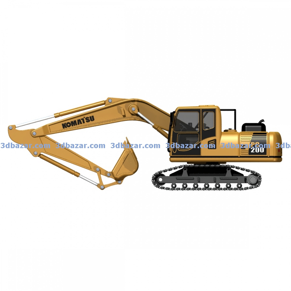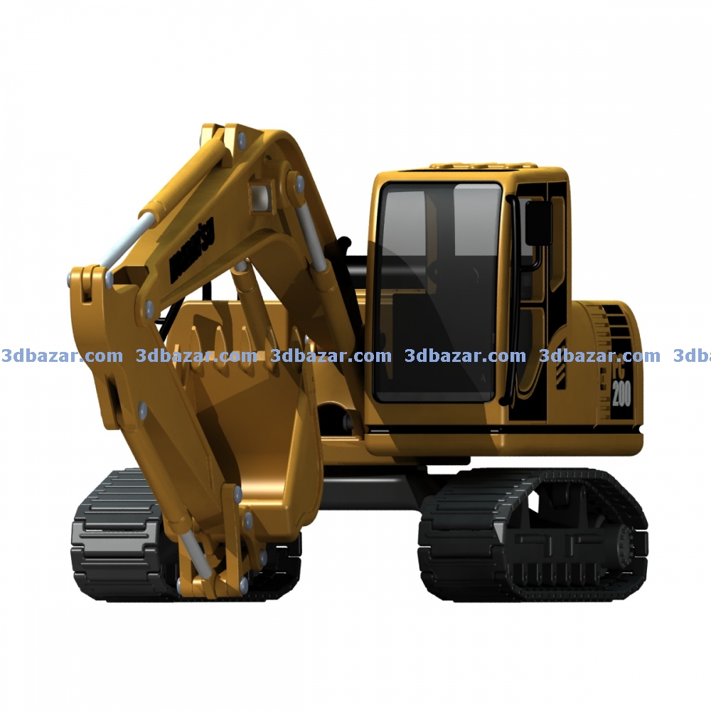 Модель бульдозера Komatsu PC200, количество деталей 21 шт. выполнен из пластика с подвижными узлами. Может быть изготовлен литьем или 3D печатью.