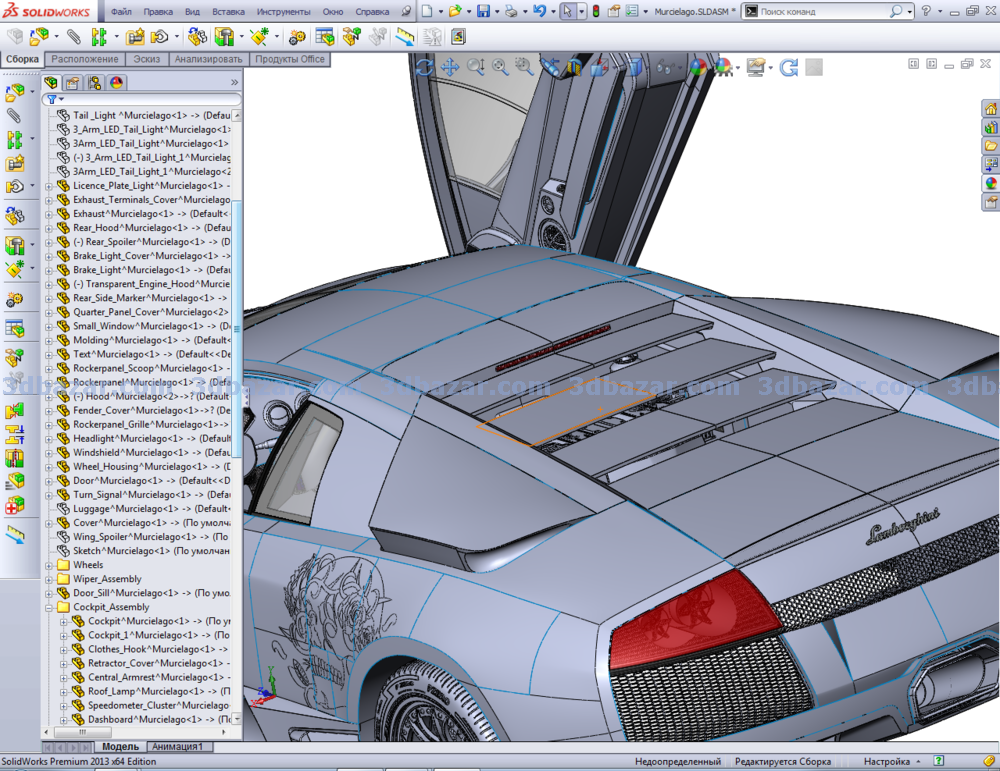 3D модель автомобиля Lamborghini Murcielago lp640. Подробно проработанная сборка. Масштаб модели 1:1. В сборке присутствуют альтернативные элементы, позволяющие видоизменять облик автомобиля.